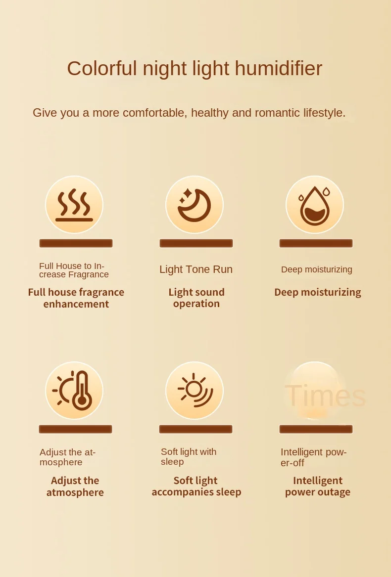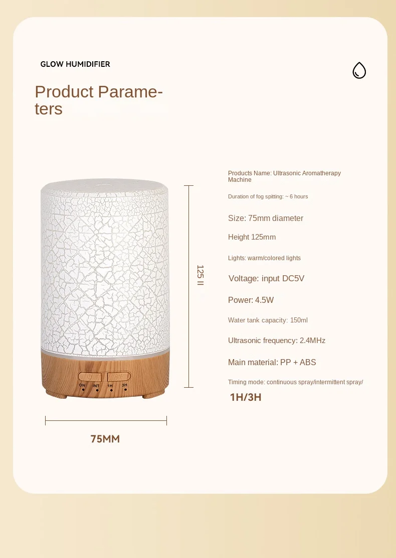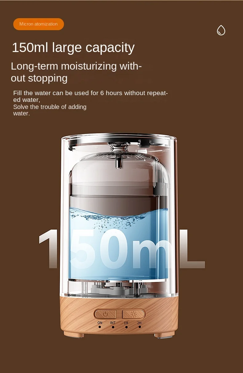 Aroma Diffuser 150ML Timing Function Ultrasonic Air Humidifier Bedroom Essential Oil Diffuser with LED Night Lights