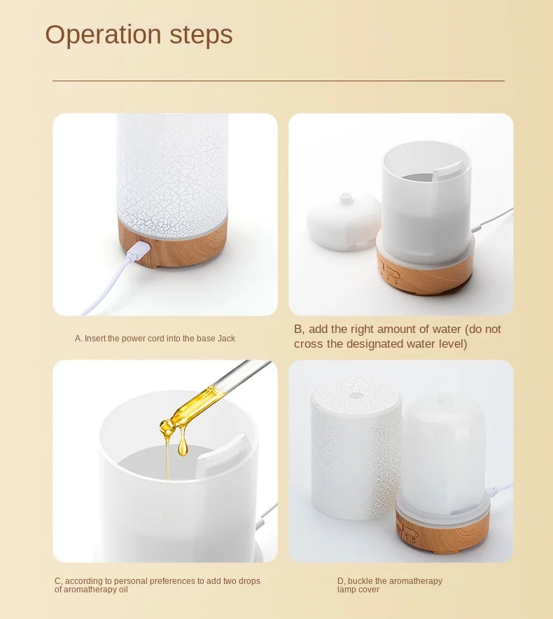 Remplissez le réservoir avec de l’eau, ajoutez quelques gouttes d’huiles essentielles, allumez-le et laissez la magie opérer.